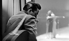 Johnny Cash passes time in his hotel room by making a cat's cradle with a piece of stringPhotograph: Marvin Koner/CorbisCash tunes his guitar as he sits backstage before the showPhotograph: Marvin Koner/CorbisListening to a record with Ersel Hickey and other friendsPhotograph: Marvin Koner/CorbisPlaying a banjo in the dressing roomPhotograph: Marvin Koner/CorbisWatching performers from the wings as he waits his turnPhotograph: Marvin Koner/CorbisOn stage with his band, the Tennessee Two, l-r, bassist Marshall Grant, Johnny Cash, and electric guitarist Luther PerkinsPhotograph: Marvin Koner/CorbisCash's hair flies up in the air as he moves to the musicPhotograph: Marvin Koner/CorbisAutographing photos for fansPhotograph: Marvin Koner/CorbisSmoking a cigarette in his hotel roomPhotograph: Marvin Koner/Corbis