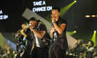 Dappy, a member of the band N-Dubz, performs at the show Photograph: Guy Levy/PA
