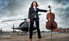 Laura Moody, cellist with the Elysian Quartet, prepares to take to the skies Photograph: David Jensen/The Corner Shop PR