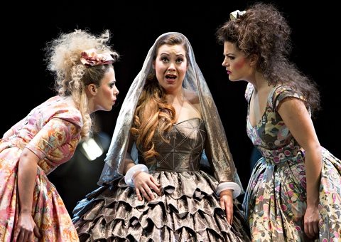 Musically it’s a mixed bag, too. The overture was a non-starter – no tension in the opening bars – but things picked up. Conductor William Lacey keeps tempos bouncing along and the orchestra generally sounds taut and bright. There isn’t much logic to the casting: the voices are ill-matched in size and style, making for slightly awkward ensemble pieces. John Molloy hasn’t got the right gravitas for Alidoro; Nico Darmanin’s tenor is a little pinched but he scales Don Ramiro’s stratospheric second act with aplomb. Standing in as Don Magnifico, Umberto Chiummo is the classic fool, gangly and hapless rather than anything more malicious or interesting. Best are the three women. Rebecca Bottone and Máire Flavin sing nimbly and have fun as the stepsisters, all swivelling hips and mouths agog. Victoria Yarovaya is terrific as Cenerentola, with a velvet low register and dazzling coloratura to boot. It’s worth sitting through this production for her final scene alone.