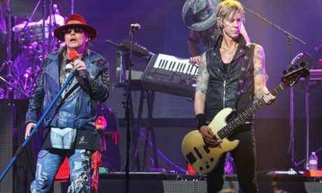 Axl Rose, left, and Duff McKagan of Guns N’ Roses in performance in Los Angeles in 2014. Rose sent a letter to the Indonesian president pleading for clemency for a group of drug traffickers facing execution by firing squad. Photograph: Paul A. Hebert/Paul A. Hebert/Invision/AP