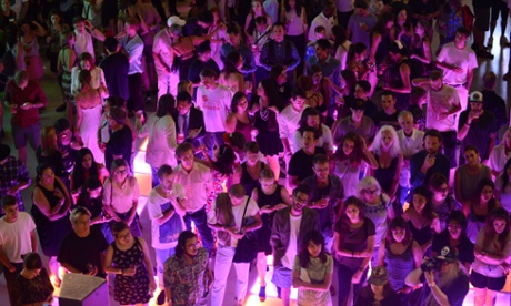 6.45pm. I enter and say “Wow.” In the middle of the 96-foot-tall gallery rotunda – known most famously as the location of the gun battle in the Clive Owen movie The International – there is a large dance floor made up of clear squares that are lit from underneath with flashing neon lights.